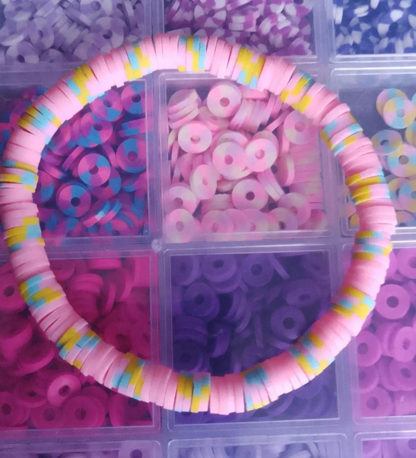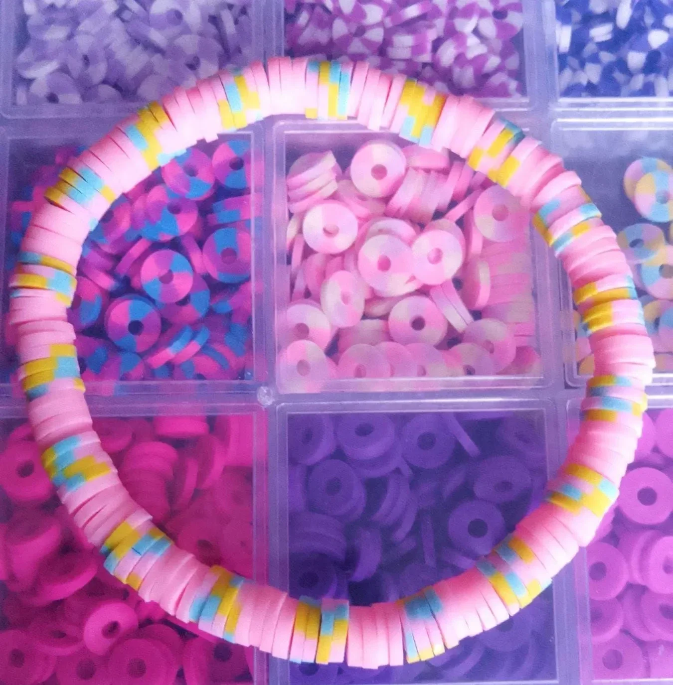 Handmade Clay Bead Pink, Blue and Yellow Bracelets